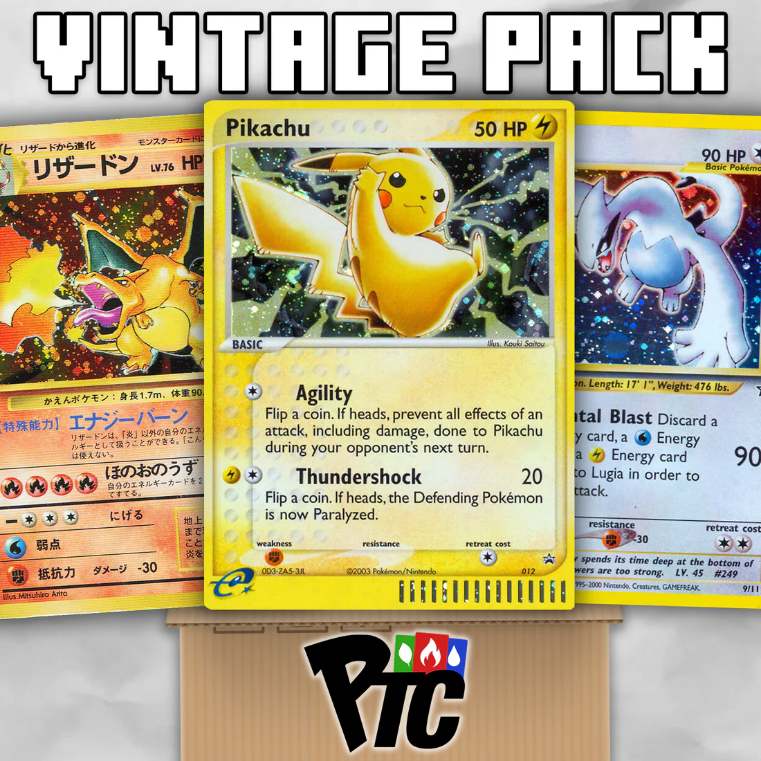 Each Pokemon VINTAGE Mystery Pack contains a carefully curated and randomly assorted selection of authentic Pokémon cards and items: