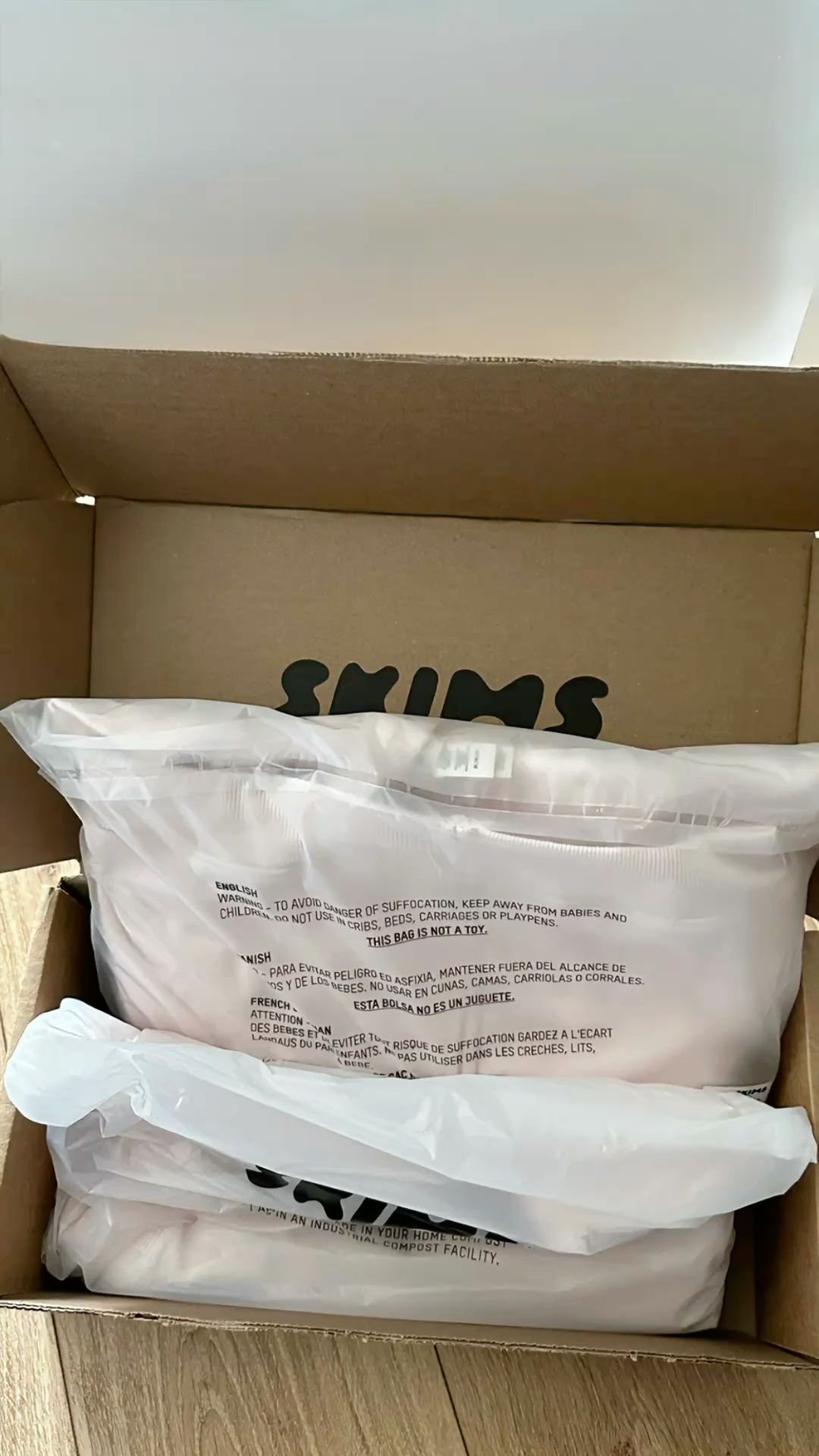 Each pallet contains 180 new, tagged pieces of Skims men’s apparel.