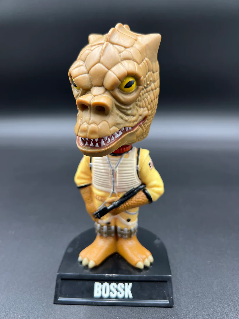From our star war toys collection comes the Funko Star Wars Bossk Bobble Head Figure Toy (2008). Bossk, the infamous Trandoshan bounty hunter, is captured here in Funko’s early bobble head style before their rise to Pop! Vinyl fame.